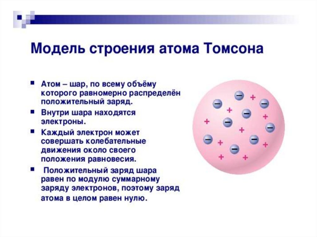 А) положительный заряд распределен равномерно по всему объему атома;