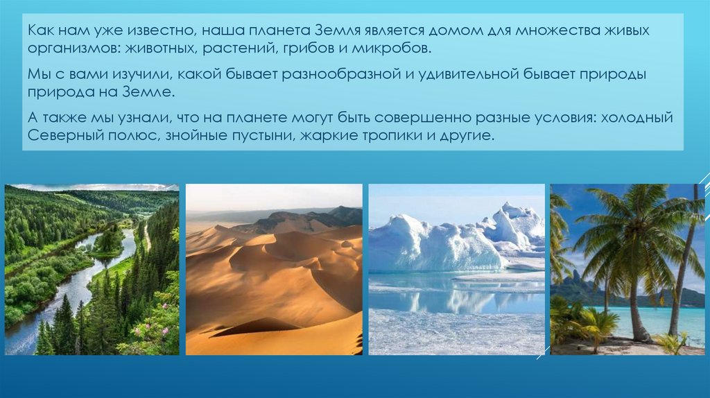 Как нам уже известно, наша планета Земля является домом для множества живыхорганизмов: животных, растений, грибов и микробов.