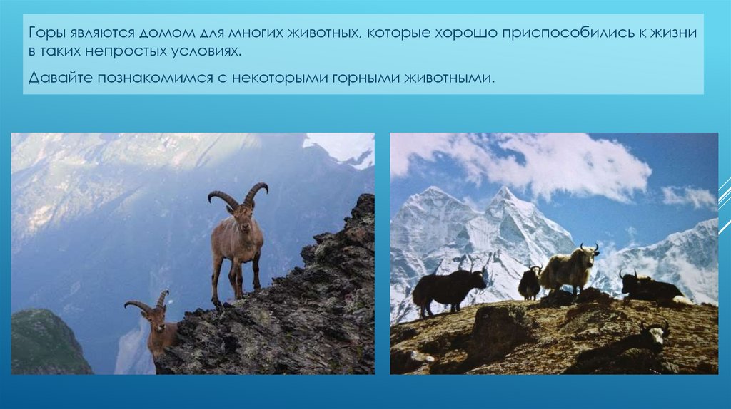 Горы являются домом для многих животных, которые хорошо приспособились к жизнив таких непростых условиях.