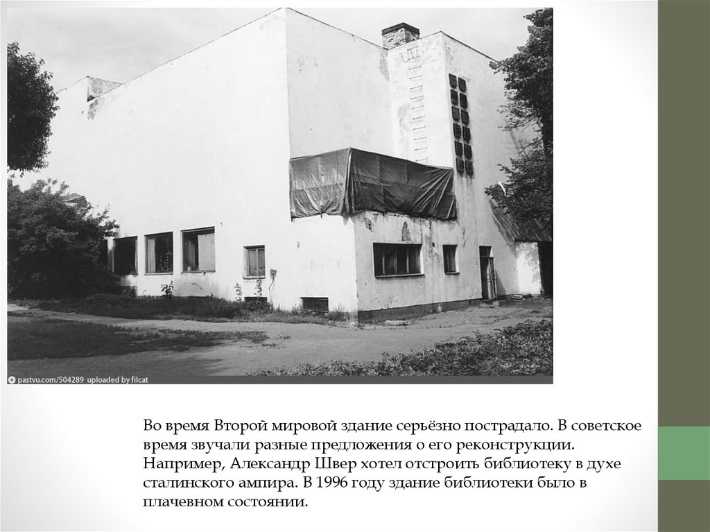 Во время Второй мировой здание серьёзно пострадало. В советскоевремя звучали разные предложения о его реконструкции.