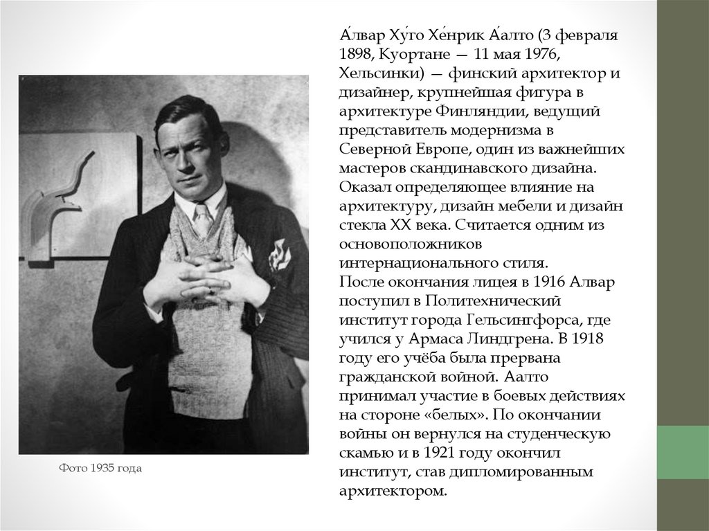 Фото 1935 годаА́лвар Ху́го Хе́нрик А́алто (3 февраля