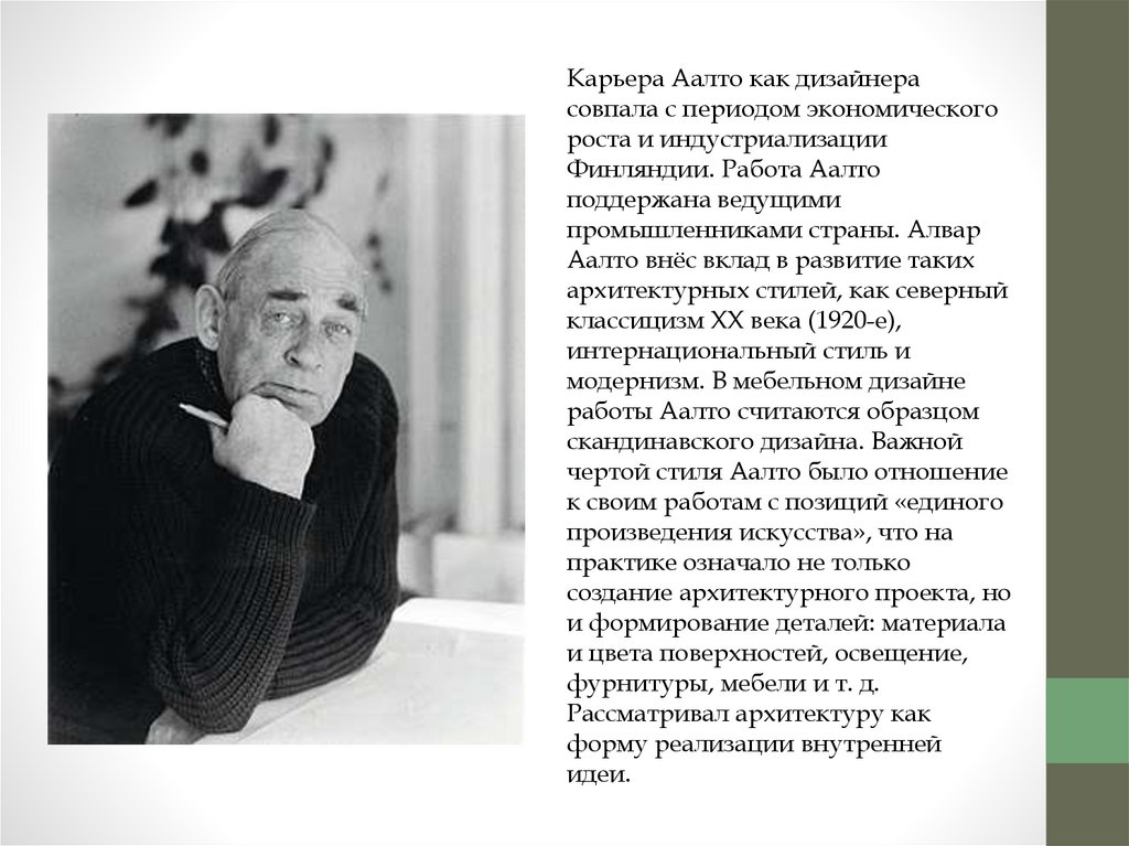 Карьера Аалто как дизайнерасовпала с периодом экономического