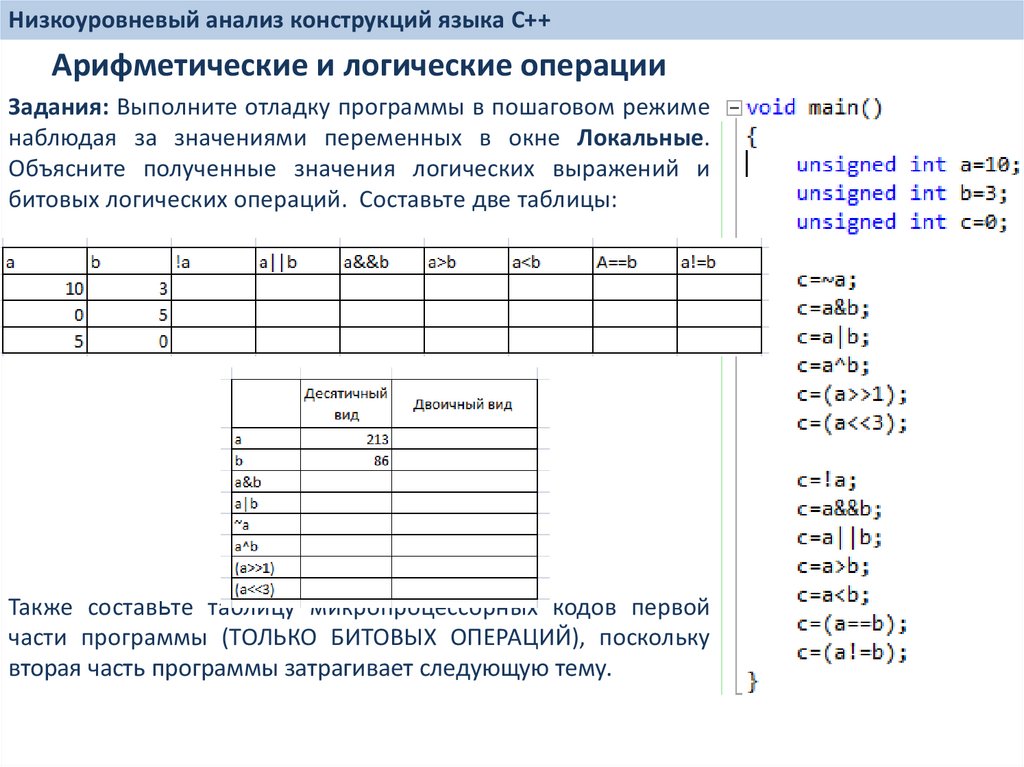 Низкоуровневый анализ конструкций языка С++Арифметические и логические операции