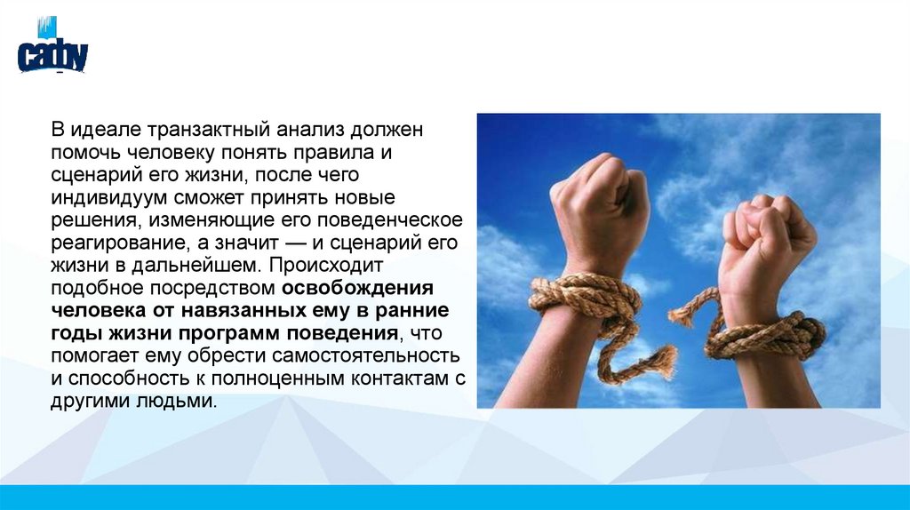 В идеале транзактный анализ долженпомочь человеку понять правила и