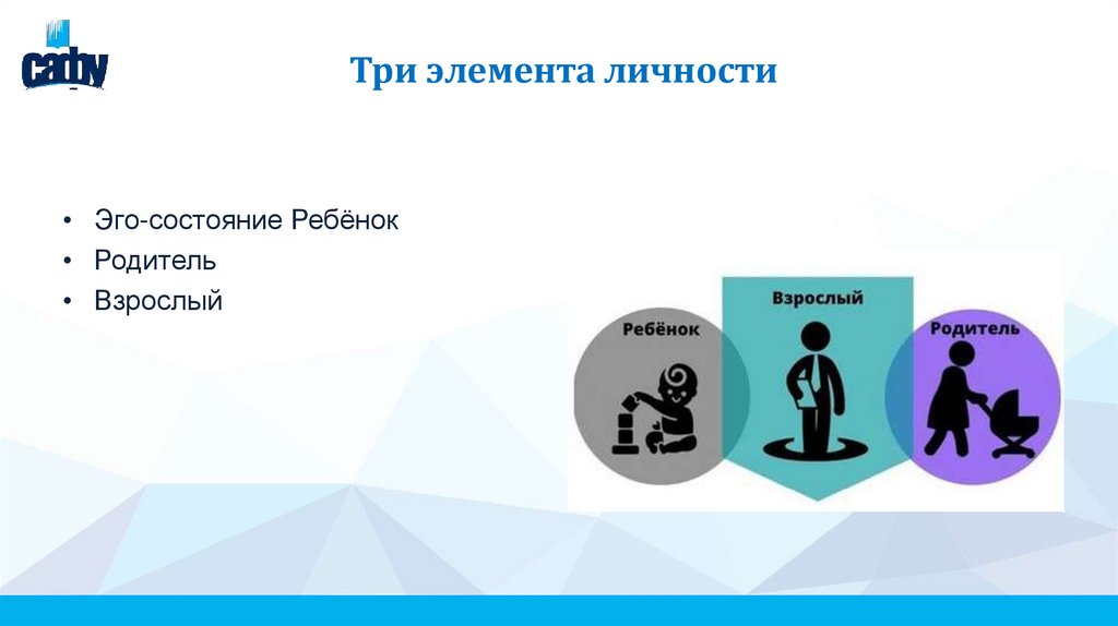 Три элемента личности• Эго-состояние Ребёнок
