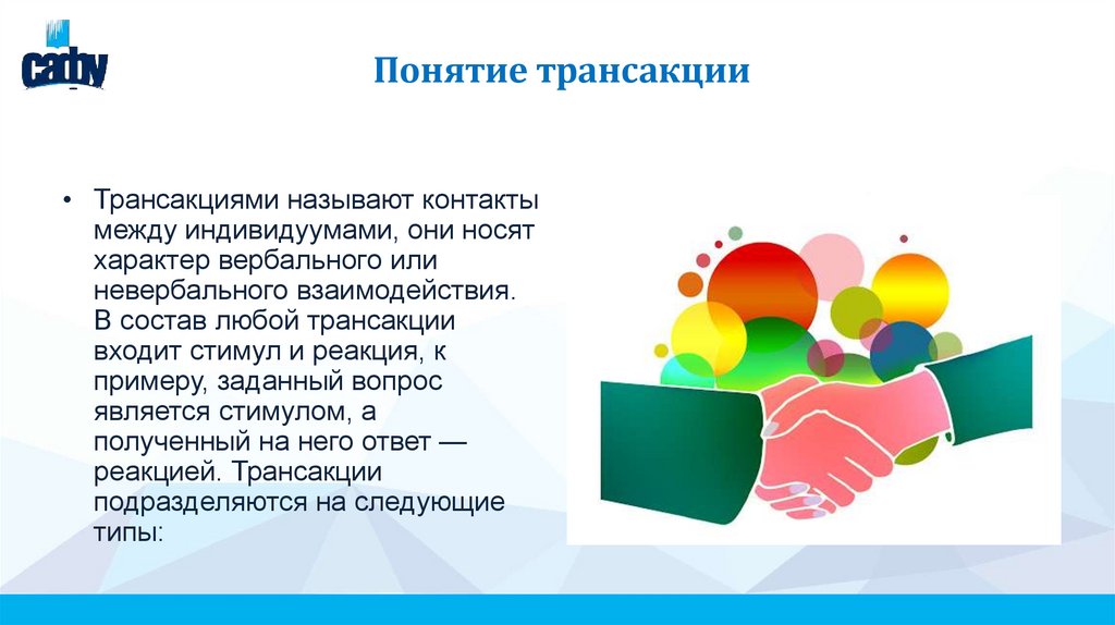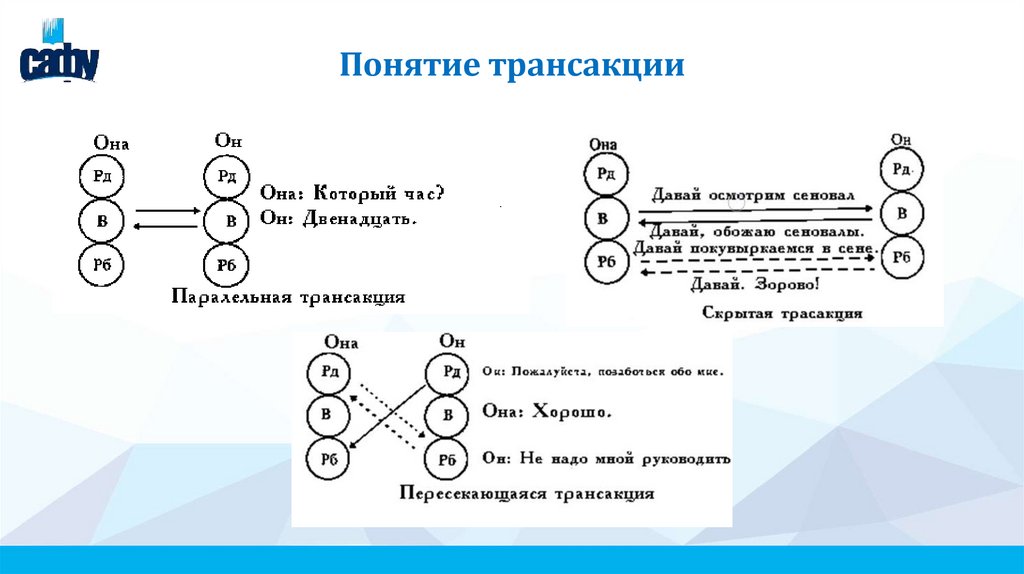 Понятие трансакции• Трансакциями называют контакты
