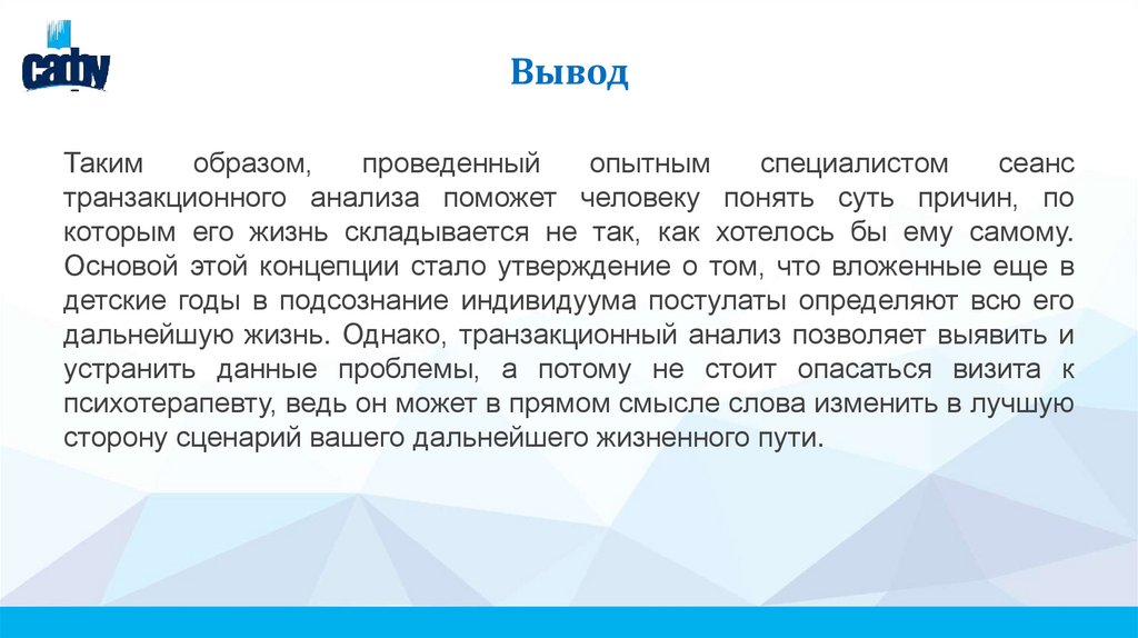 транзакционного анализа поможет человеку понять суть причин, по