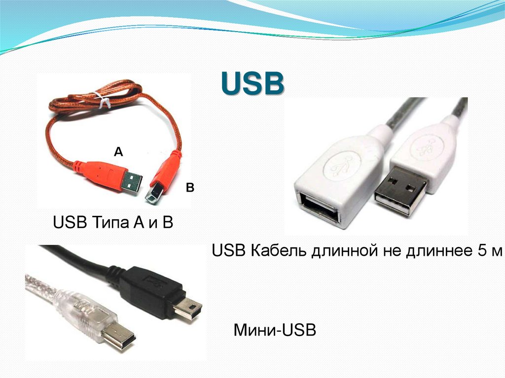 USB Кабель длинной не длиннее 5 м