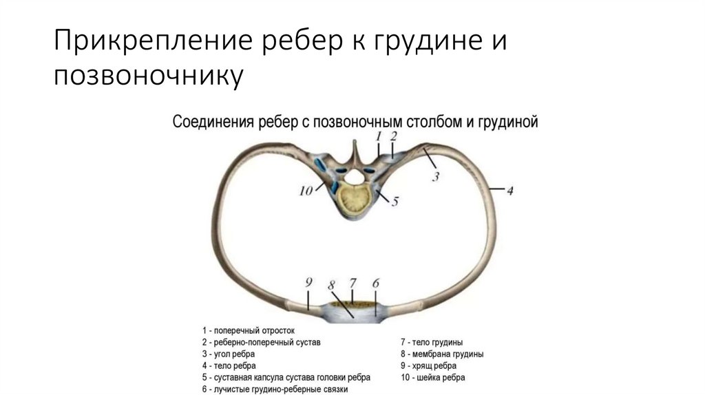 Прикрепление ребер к грудине ипозвоночнику