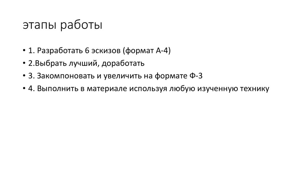 этапы работы• 1. Разработать 6 эскизов (формат А-4)