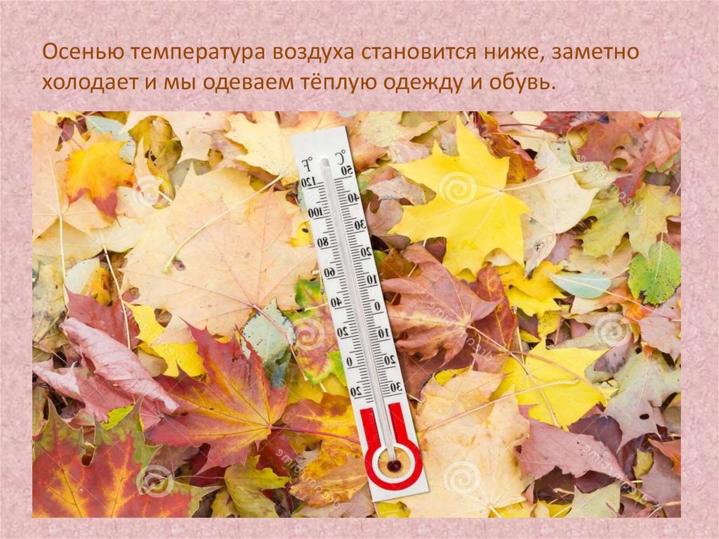 Осенью температура воздуха становится ниже, заметнохолодает и мы одеваем тёплую одежду и обувь.