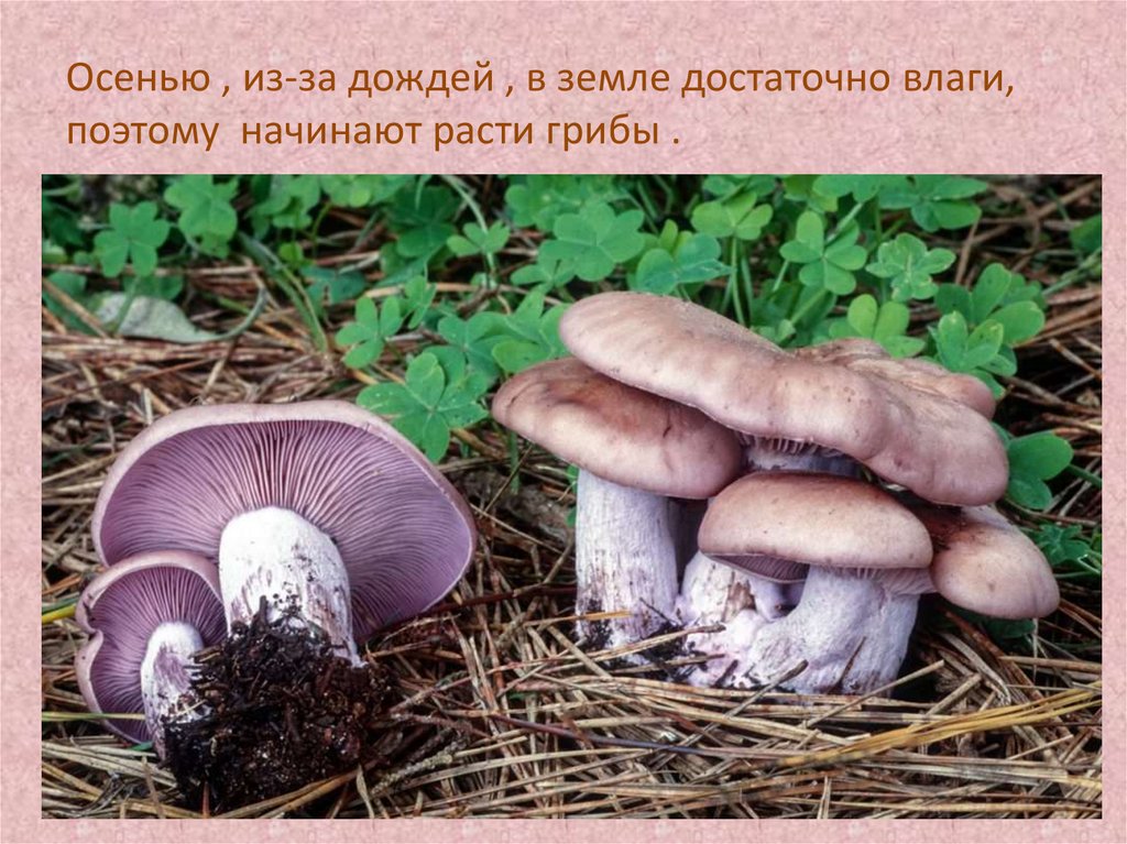 Осенью , из-за дождей , в земле достаточно влаги,поэтому начинают расти грибы .