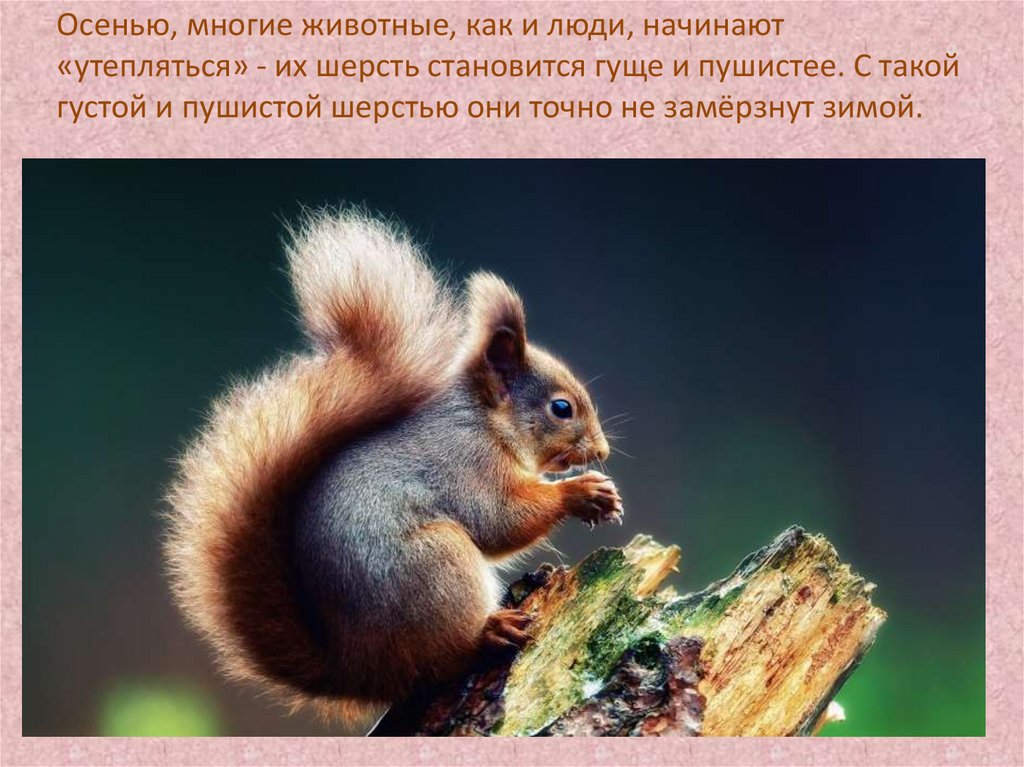 Осенью, многие животные, как и люди, начинают«утепляться» - их шерсть становится гуще и пушистее. С такой