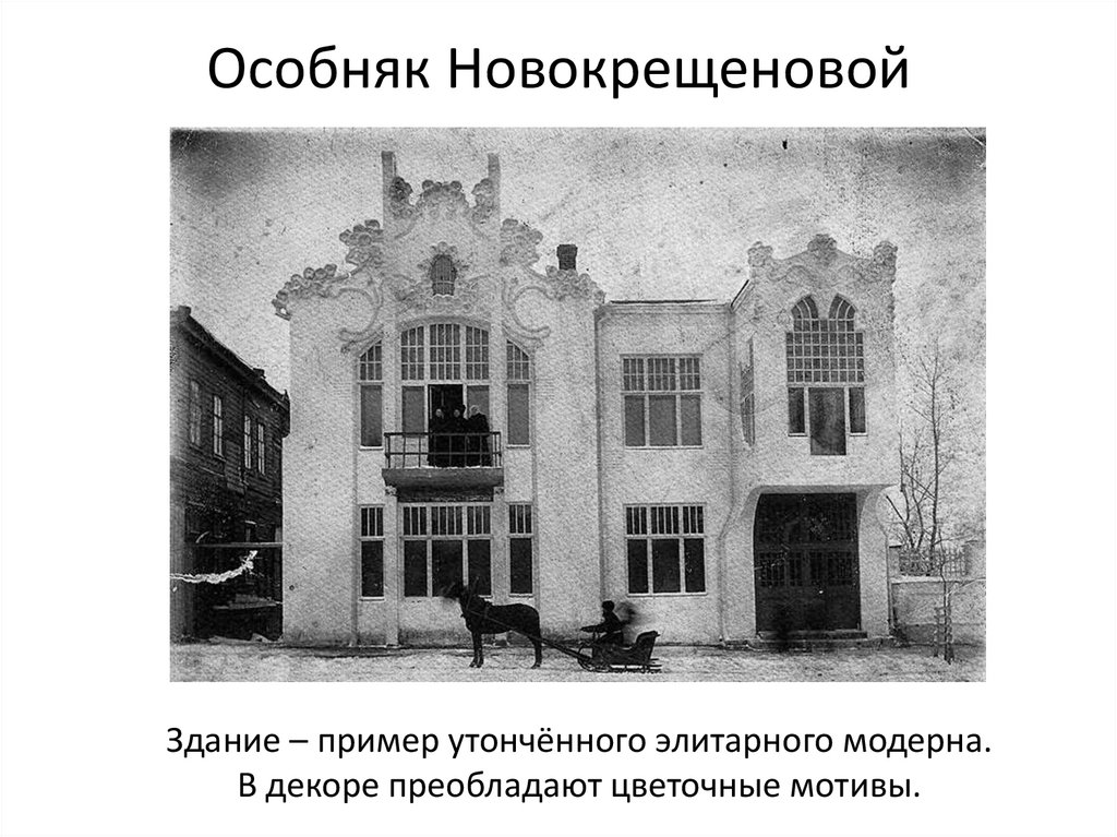 Особняк НовокрещеновойЗдание – пример утончённого элитарного модерна.