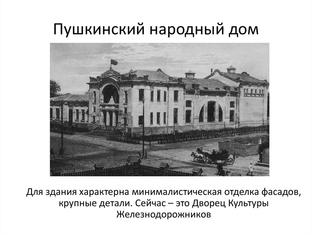 Пушкинский народный домДля здания характерна минималистическая отделка фасадов,