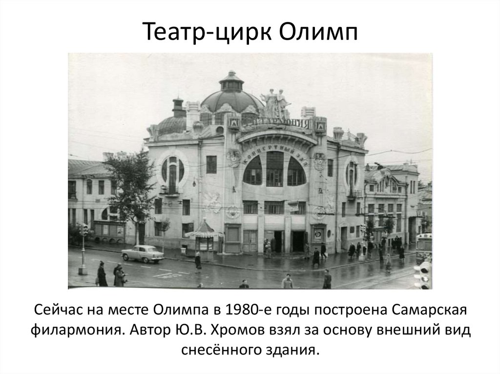 Театр-цирк ОлимпСейчас на месте Олимпа в 1980-е годы построена Самарская