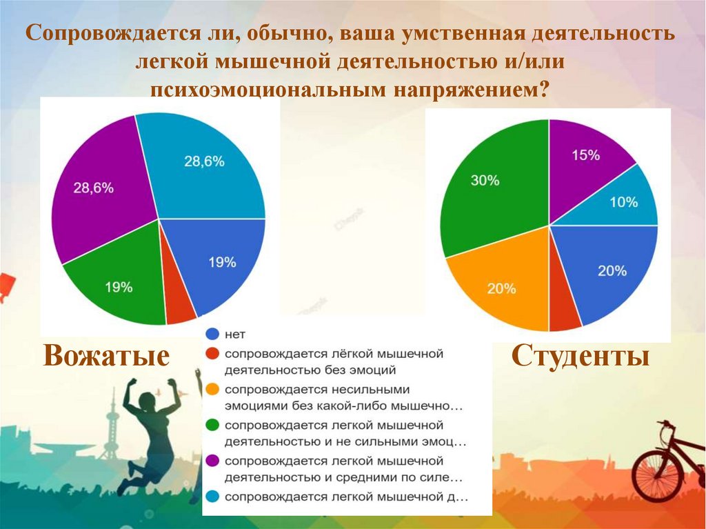 Сопровождается ли, обычно, ваша умственная деятельностьлегкой мышечной деятельностью и/или