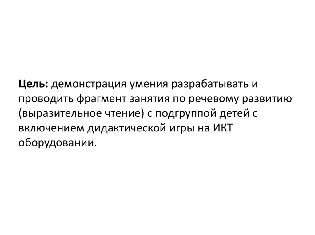 Цель: демонстрация умения разрабатывать ипроводить фрагмент занятия по речевому развитию