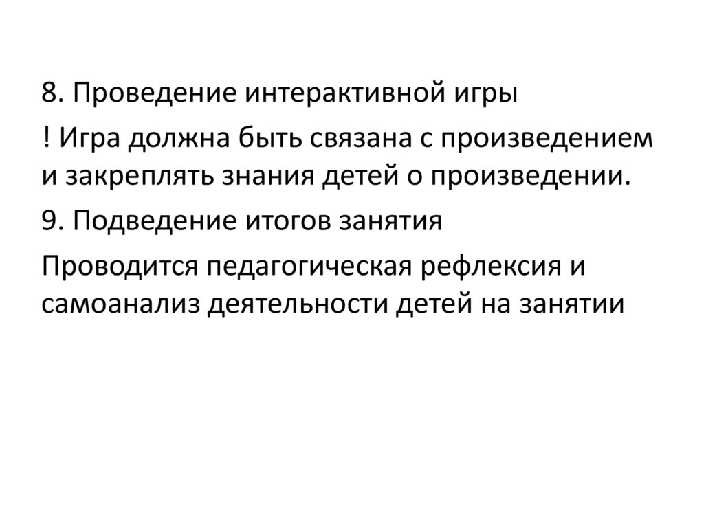 8. Проведение интерактивной игры! Игра должна быть связана с произведением
