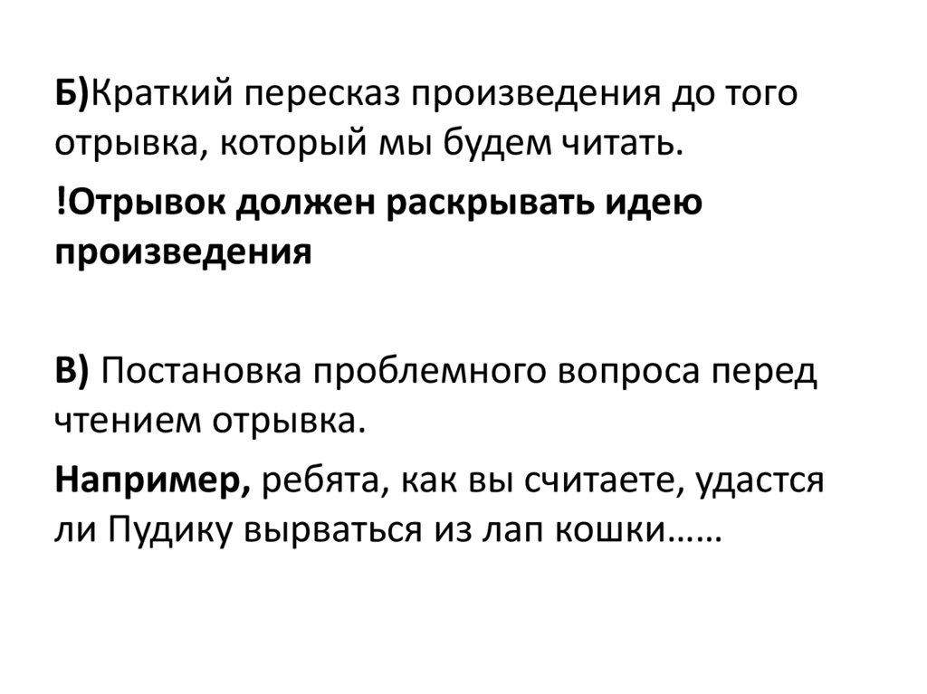 Б)Краткий пересказ произведения до тогоотрывка, который мы будем читать.