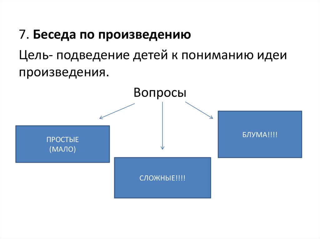 7. Беседа по произведениюЦель- подведение детей к пониманию идеи