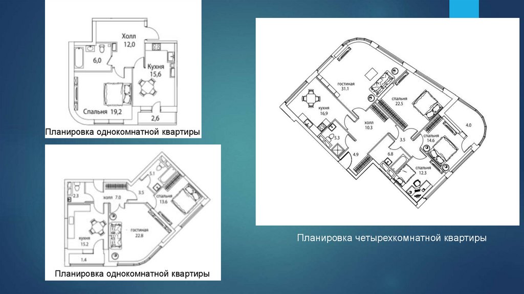 Планировка однокомнатной квартирыПланировка четырехкомнатной квартиры