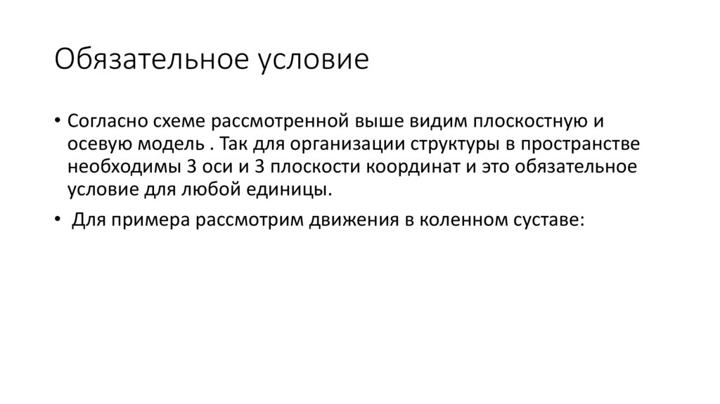 Обязательное условие• Согласно схеме рассмотренной выше видим плоскостную и