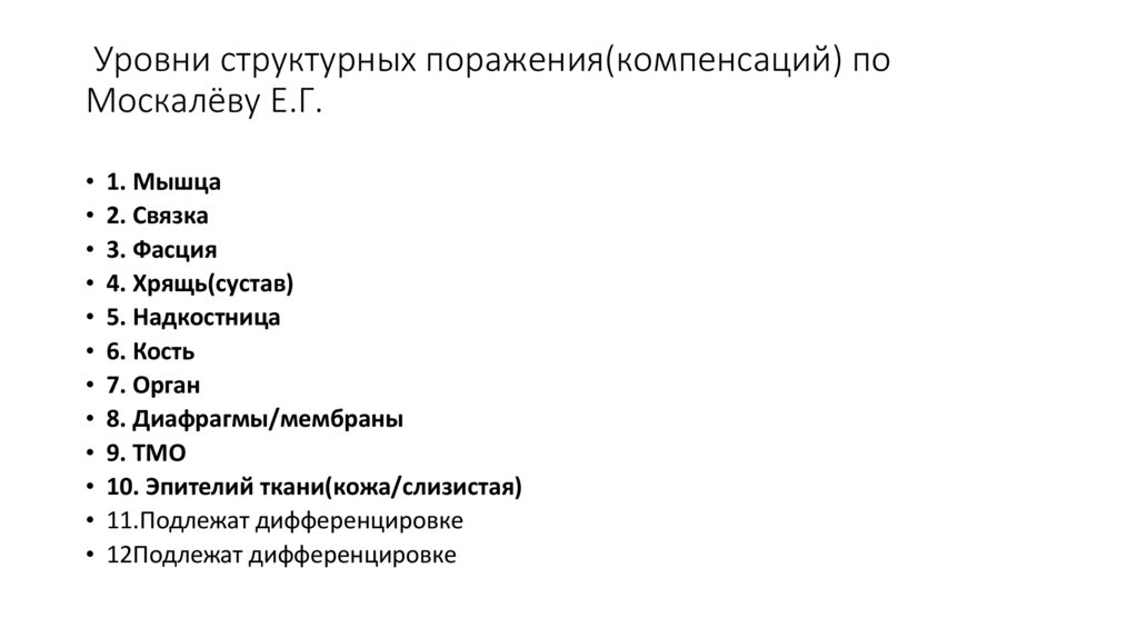 Уровни структурных поражения(компенсаций) поМоскалёву Е.Г.