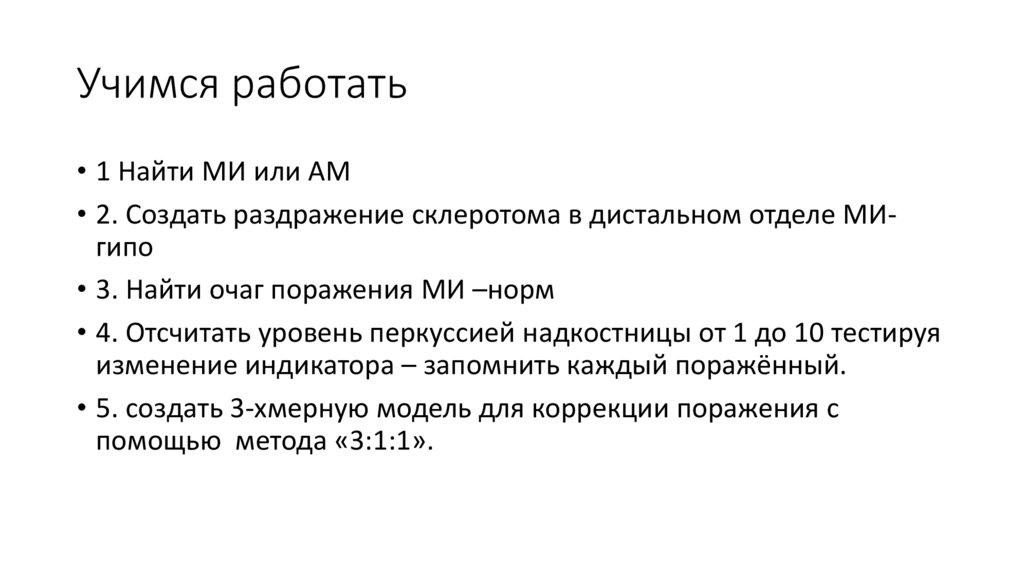 • 2. Создать раздражение склеротома в дистальном отделе МИгипо