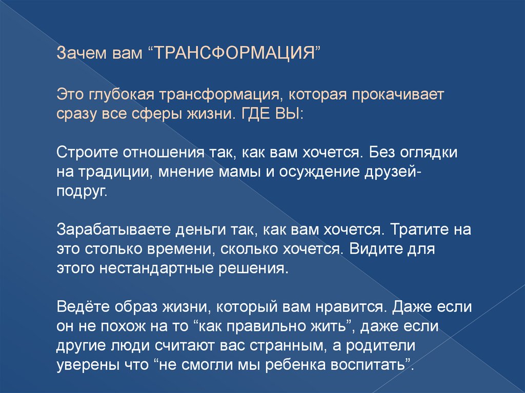 Зачем вам “ТРАНСФОРМАЦИЯ”Это глубокая трансформация, которая прокачивает
