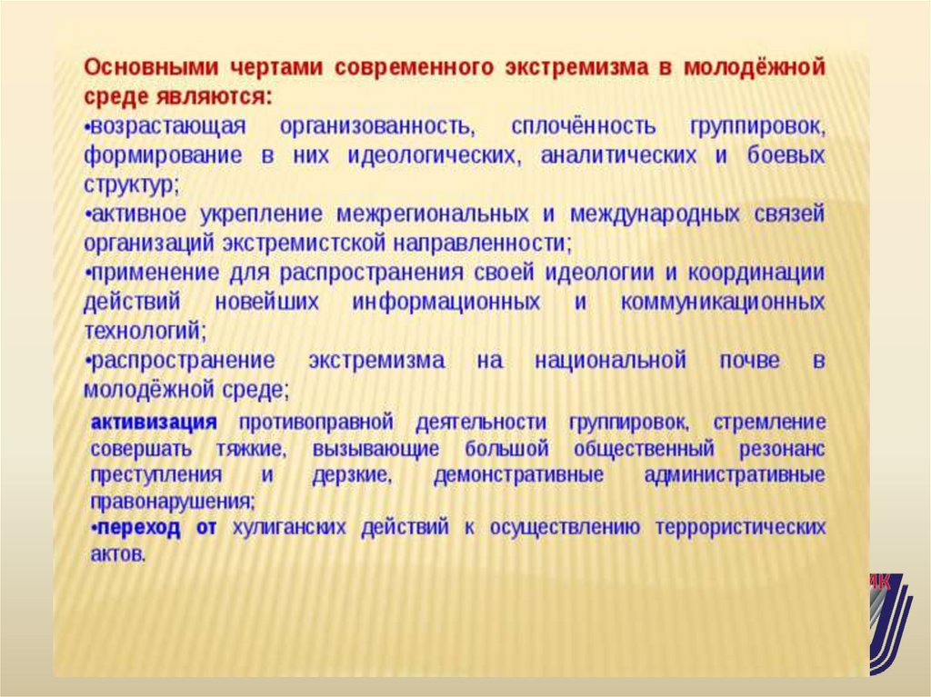 экстремизму молодежной среде