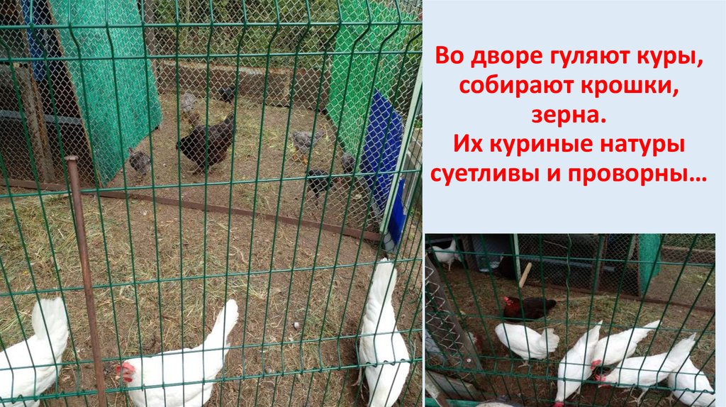 Во дворе гуляют куры,собирают крошки,
