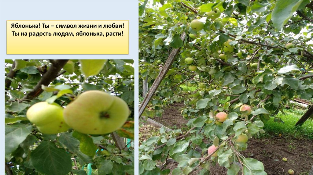 Яблонька! Ты – символ жизни и любви!Ты на радость людям, яблонька, расти!
