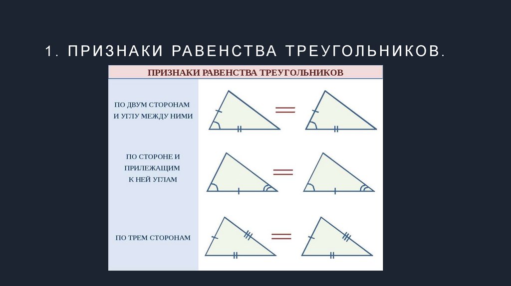 1 . П Р И З Н А К И РА В Е Н С Т В А Т Р Е У ГО Л Ь Н И К О В .3.