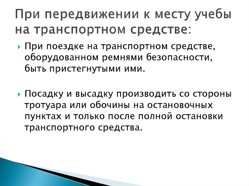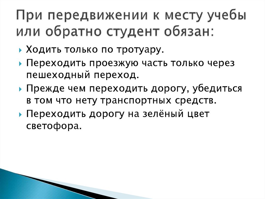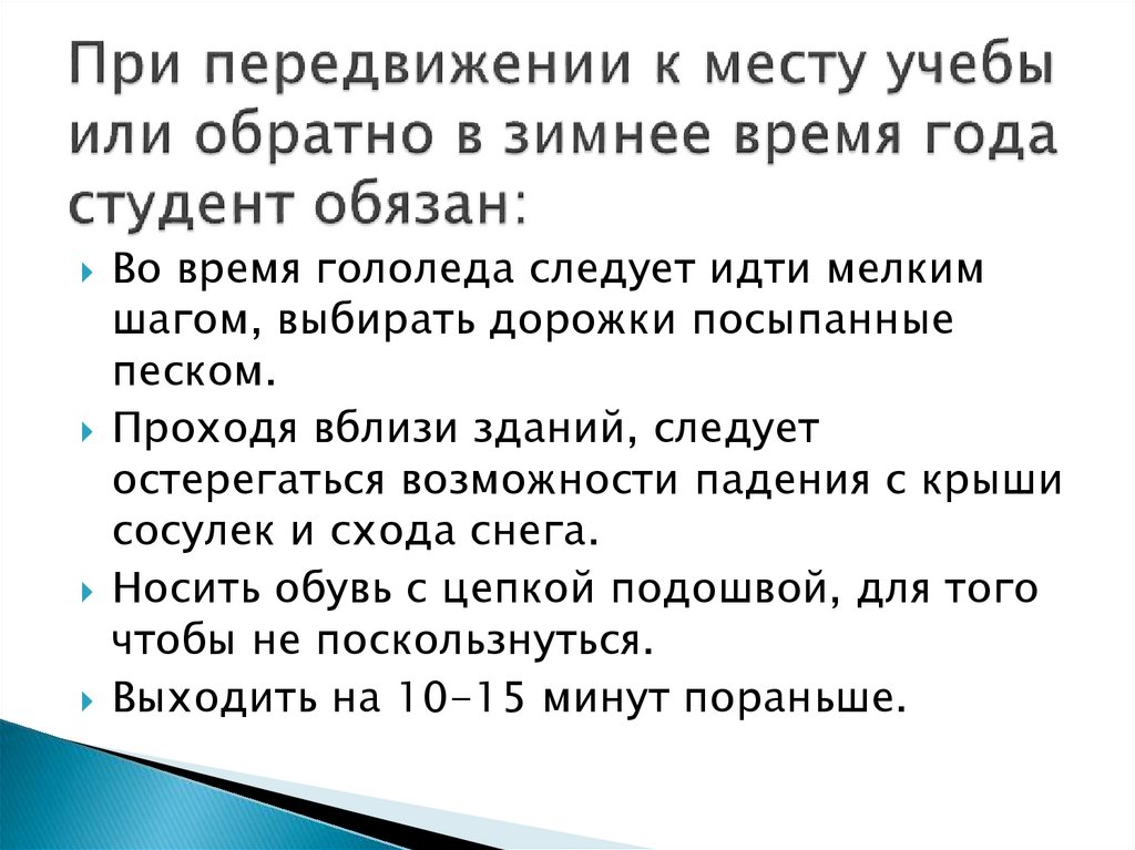 Техника безопасности при передвижении к месту учебы и обратно