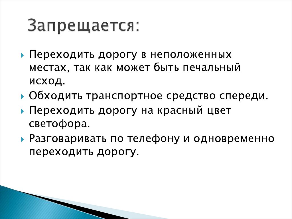 Переходить дорогу в неположенныхместах, так как может быть печальный
