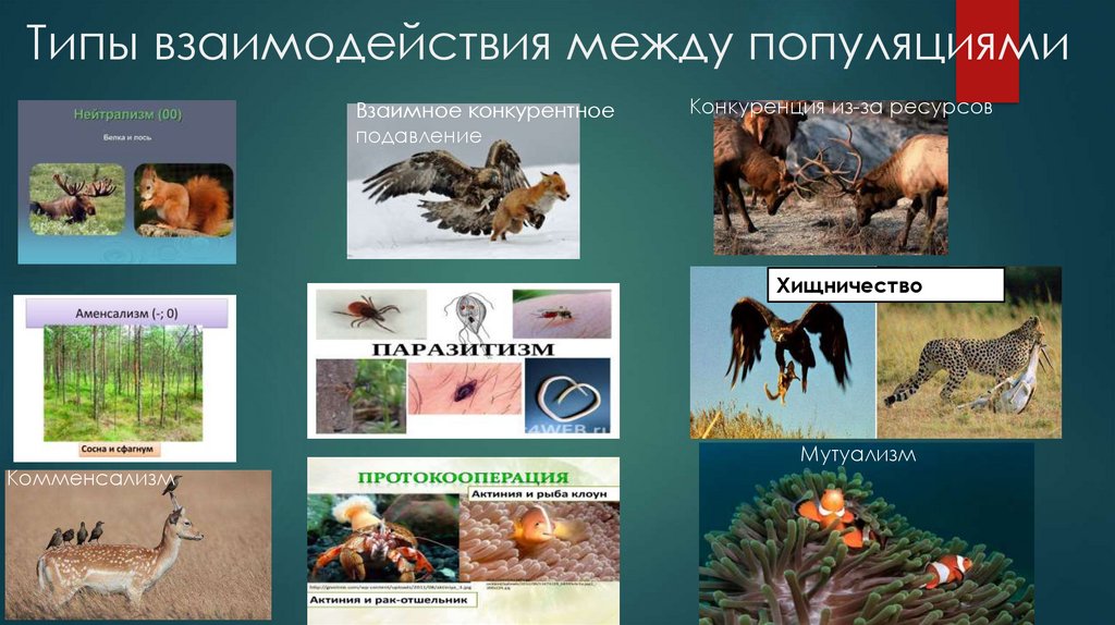 Типы взаимодействия между популяциямиВзаимное конкурентное