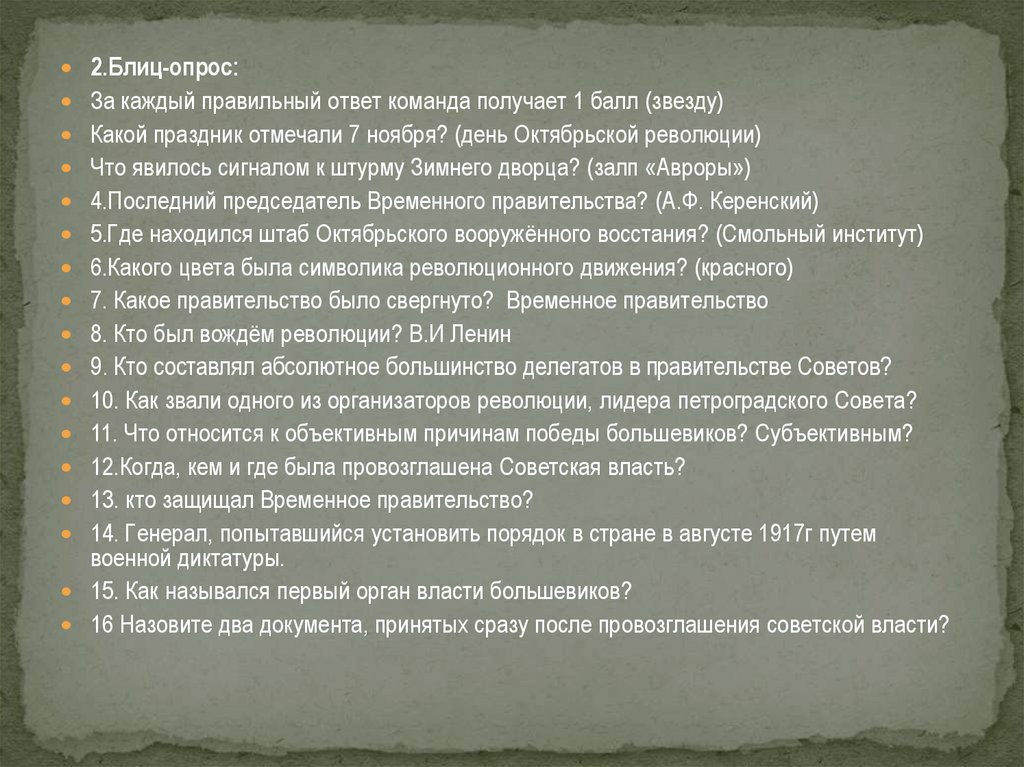 12.Когда, кем и где была провозглашена Советская власть?