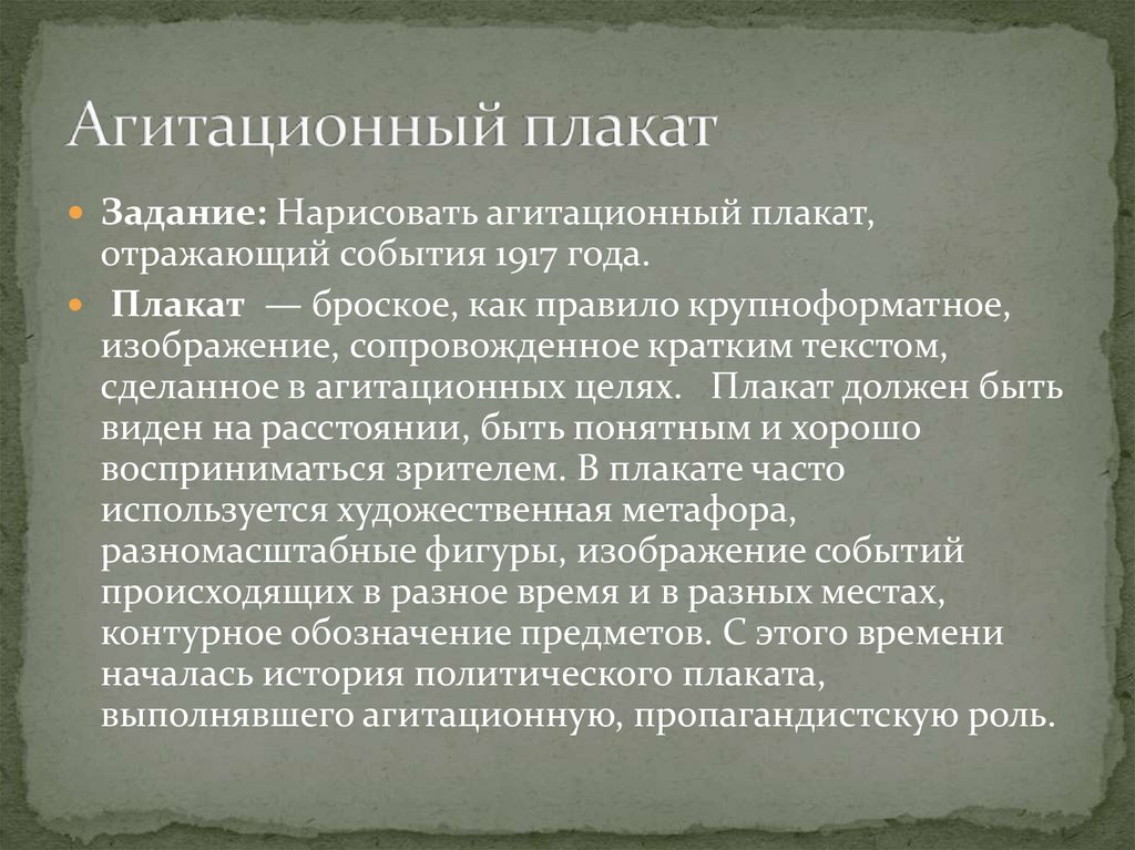 сделанное в агитационных целях. Плакат должен быть