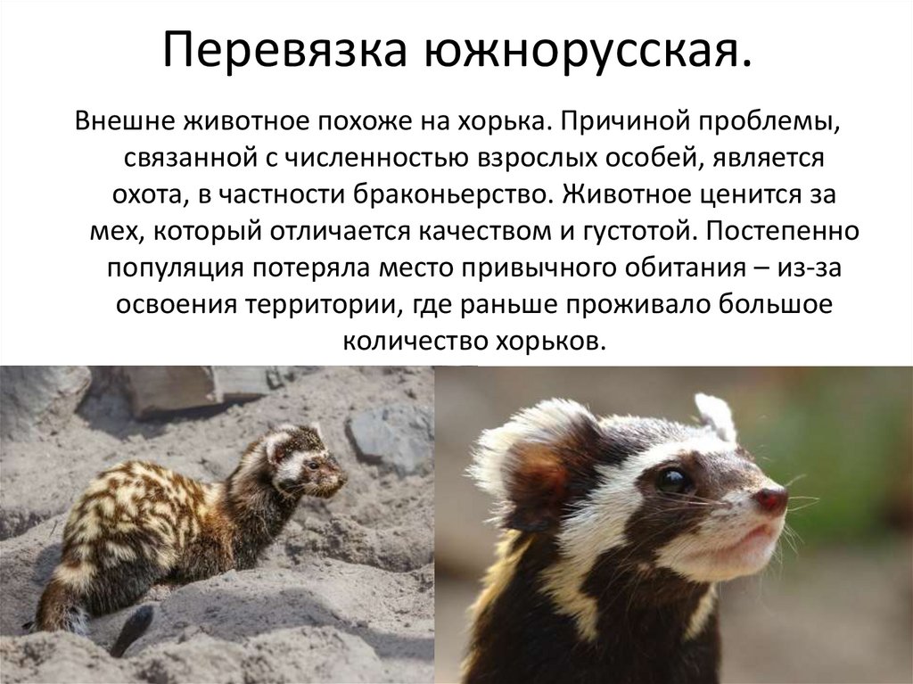 Перевязка южнорусская.Внешне животное похоже на хорька. Причиной проблемы,