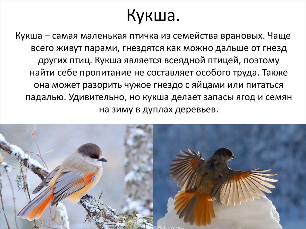 Кукша.Кукша – самая маленькая птичка из семейства врановых. Чаще