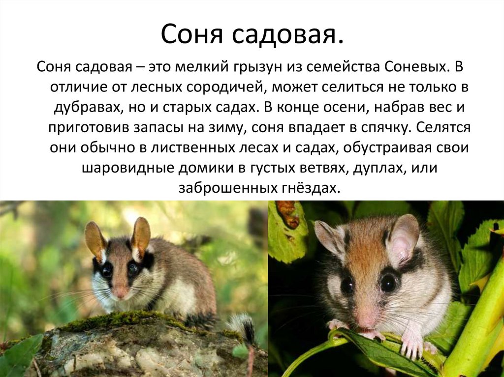 Соня садовая.Соня садовая – это мелкий грызун из семейства Соневых. В