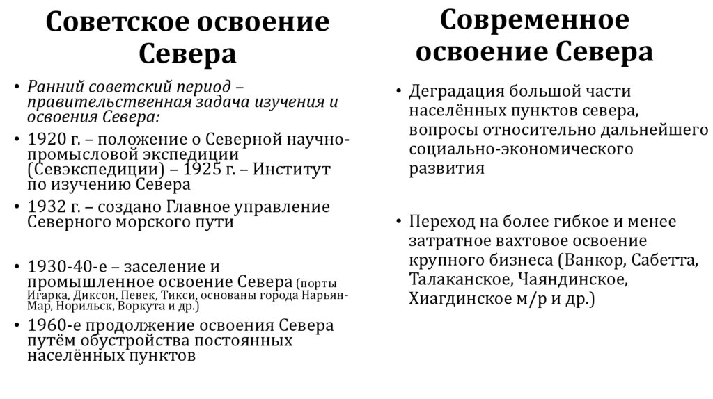 • 1960-е продолжение освоения Севера