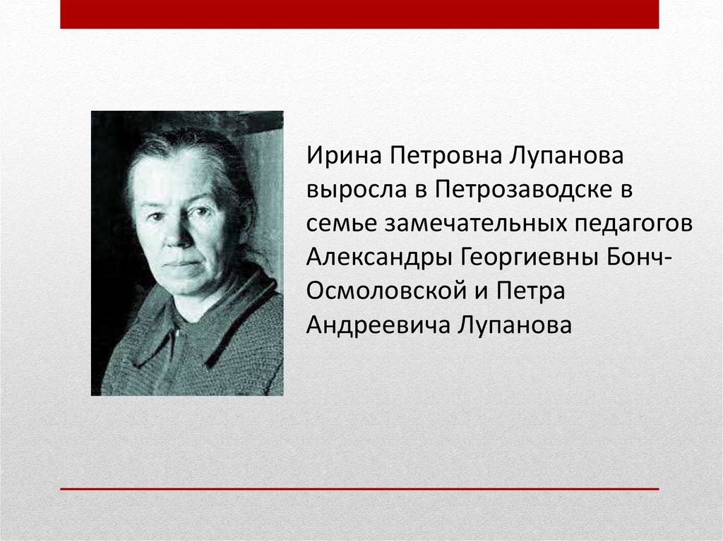 Ирина Петровна Лупановавыросла в Петрозаводске в