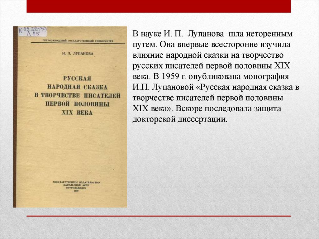 В науке И. П. Лупанова шла нетореннымпутем. Она впервые всесторонне изучила