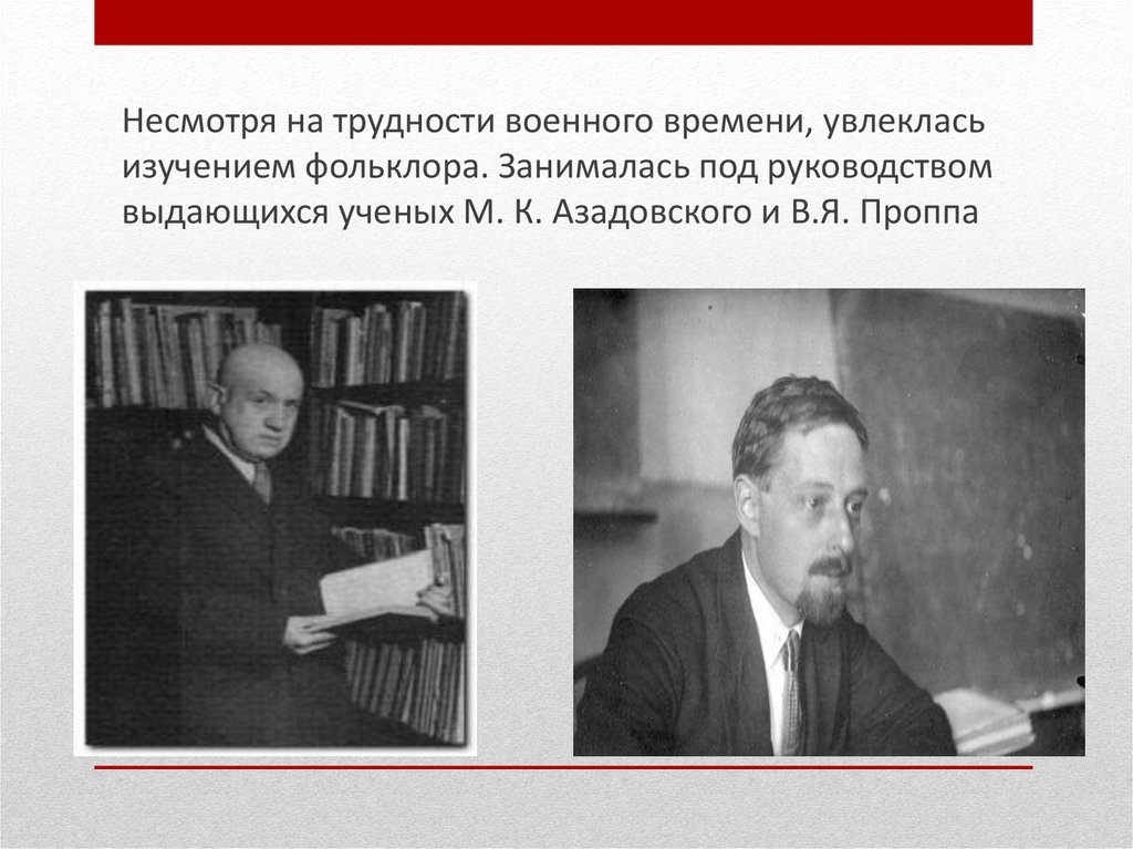 выдающихся ученых М. К. Азадовского и В.Я. Проппа