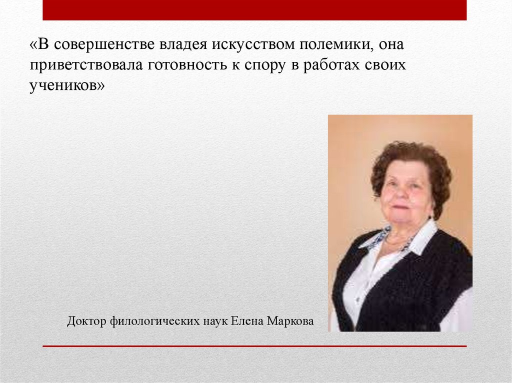 «В совершенстве владея искусством полемики, онаприветствовала готовность к спору в работах своих