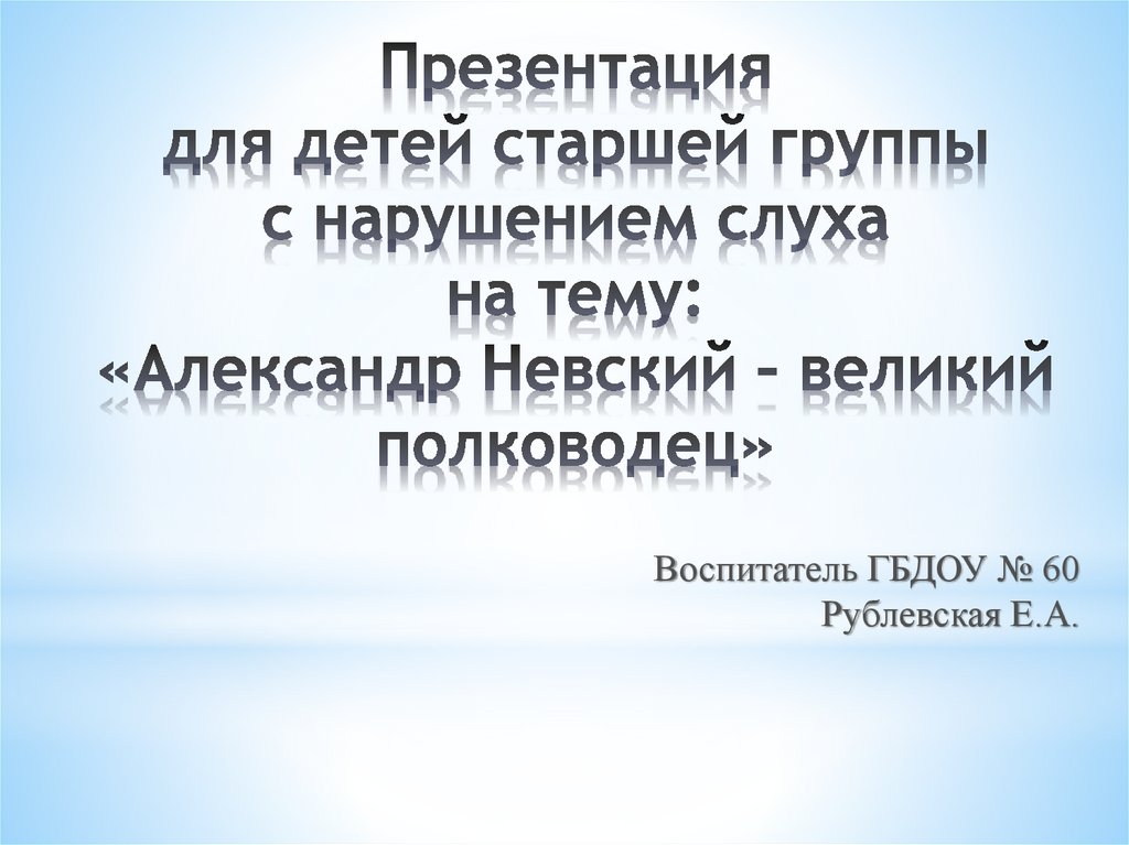 Воспитатель ГБДОУ № 60Рублевская Е.А.