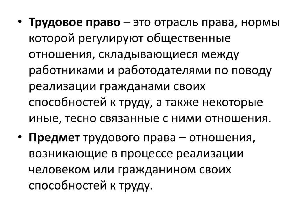 Трудовые правоотношения Трудовое право как отрасль российского права. Правовое регулирование трудовых отношений