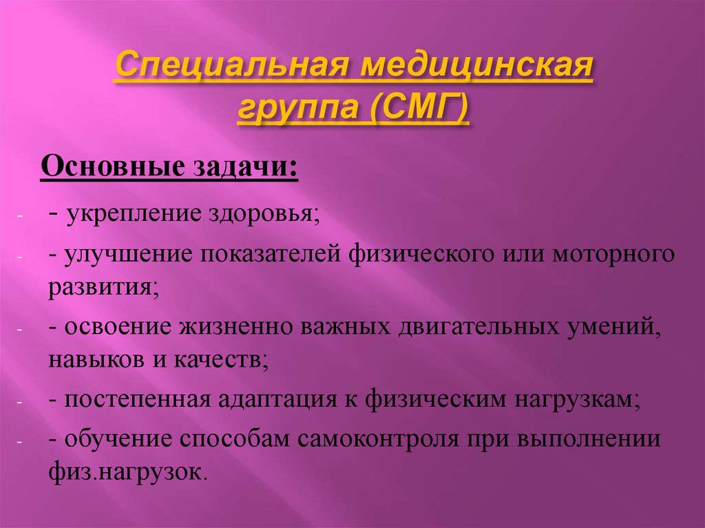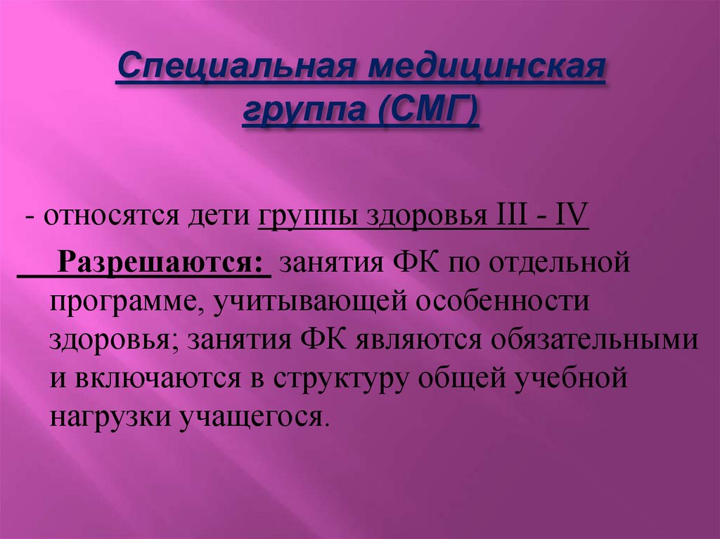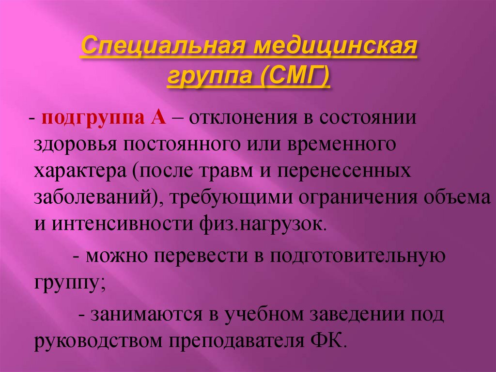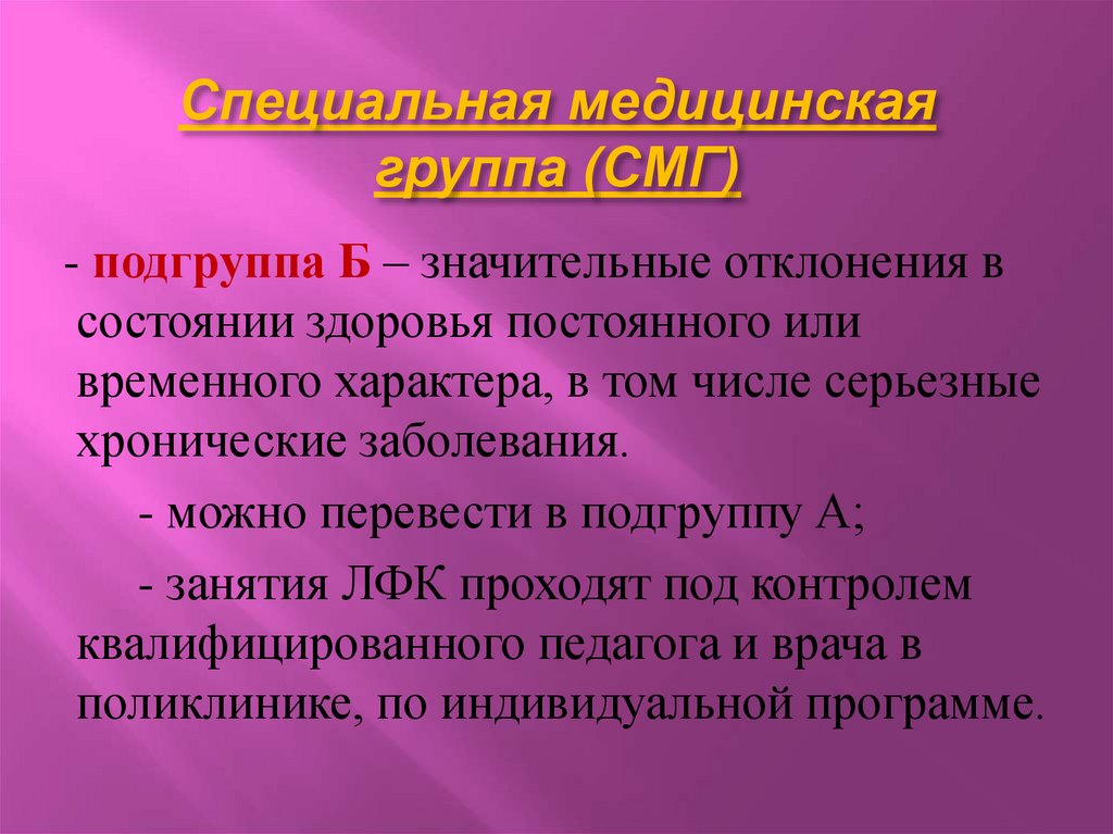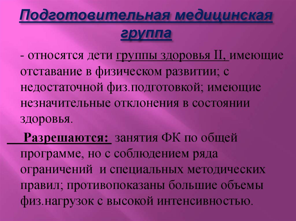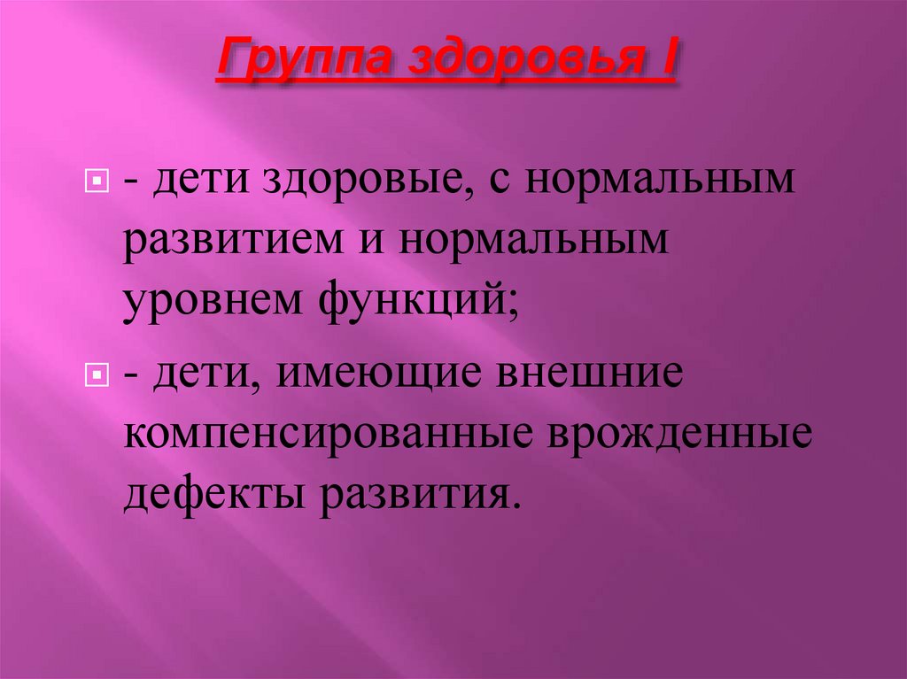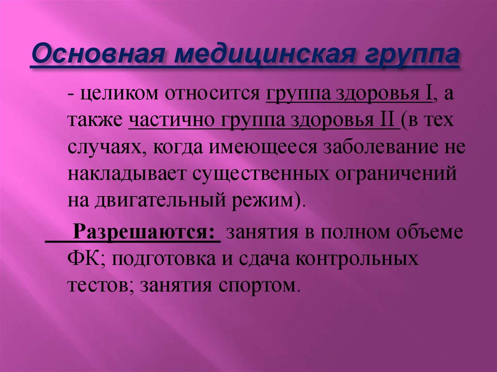 Основная медицинская группа- целиком относится группа здоровья I, а